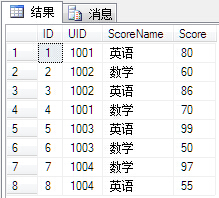 (select UID,Name,ScoreName,Score from Score,[User] where Score.UID=[User].ID) as t
