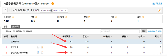 站长统计一月内的点击和搜索词