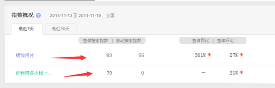 根据站长统计数据可以看出,一月内 镀锌网片和护栏网多少钱一平米点击(来访)次数最多但是两者加起来一个月的流量还没有50次(下图为镀锌网片与护栏网多少钱一平米的搜索指数)