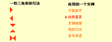 用DIV+CSS可以作出很多不同形状的角形;以下我只写了几个;CSS没有优化;是为了让大家看得更清一些;