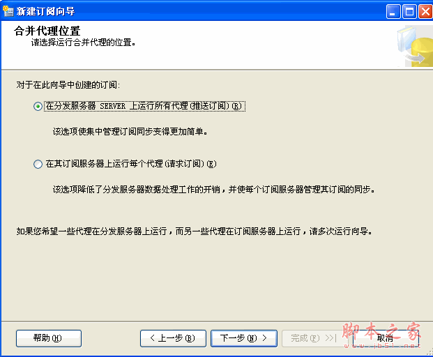 (3)选择运行代理的位置,根据需求选择是“推送”还是“请求”!