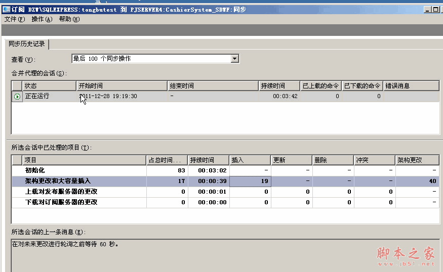 (3)打开属性后,会弹出同步历史记录的对话框。这里有插入、更新、删除等操作的记录。