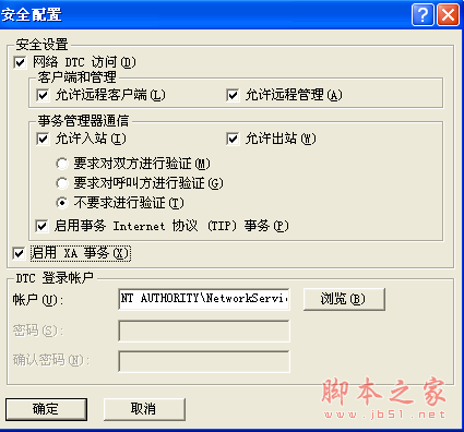 5.发布服务器和订阅服务器都要设置MSDTC ,允许网络访问控制面板--->管理工具--->组件服务--->计算机--->我的电脑(Win7继续找 -->Distributed Transaction Coordinator--->本地DTC),右键属性,找到MSDTC选项卡,点击安全设置,按如下设置即可