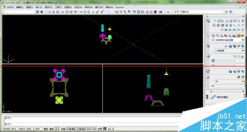 2、在CAD中通过三维建模绘制模型,因为AutoCAD经典模式下进行建模如果不注意视口的合理切换则会导致图形在导入到SAP2000中后为二维图形,并不是三维结构,下面以我之前做过的一个图形为例