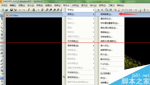 7、导入第一部分后的软件会默认这一步导入的图形为选中状态,然后我们点击“指定”——“框架”——“框架截面”