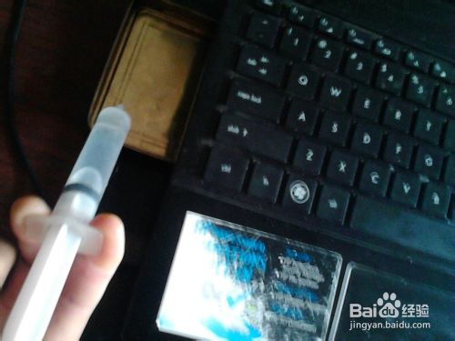 然后将盘子放在笔记本底部,用注射器取来一些凉水放进盘子里,然后将盘子推到发热部位下面。