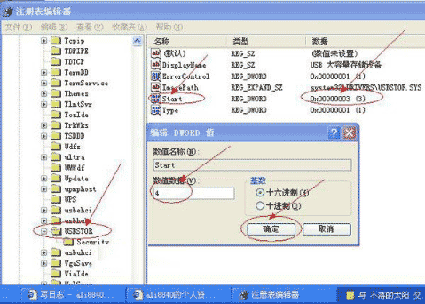 图:设置注册表禁用USB存储设备、禁用U盘的方法