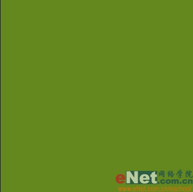 1、新建一个文件,在工具箱的下方将前景色设置为绿色RGB分别为100、135、30,按Alt Delete键,用前景色填充背景图层,效果如图01所示。