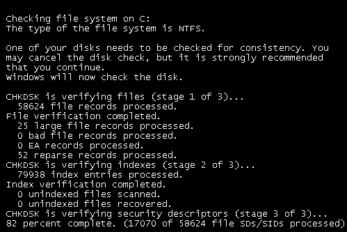 Schedule chkdsk for NTFS consistency check at Windows boot time ...