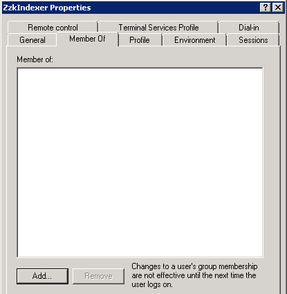 ②取消两台服务器上的ZzkIndexer帐户的远程控制(Remote Control)权限(让这个帐户拥有尽可能少的权限),如下图: