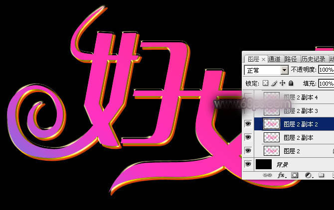 妇女节快到了,在此恭祝天下所有女性:青春美丽,事事顺意!文字有现成的素材下载;我们只需要把文字多复制几层,每一层用不同的样式增加颜色、质感、描边、纹理等,然后修改图层的混合模式、不透明度、填充度等即可得到不错的效果。下面一起跟小编来看看教程吧!