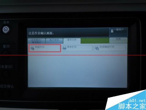 1、在打印机待机界面,点击右侧的 作业确认 按钮: