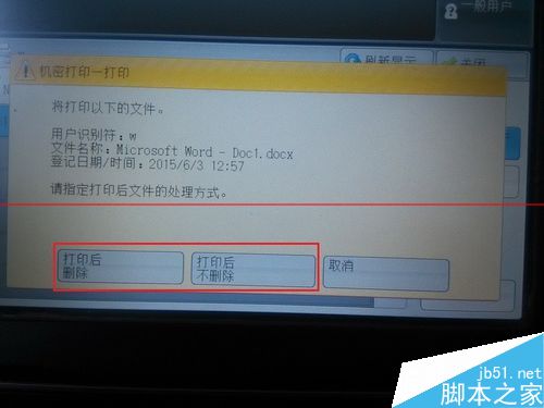 6、根据需要选择 打印后删除 或者 打印后不删除 ,即可将文档打印出来了: