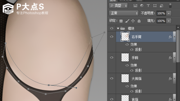 然后隐藏脖子的模块,用钢笔画脖子的金属边缘,然后添加样式。