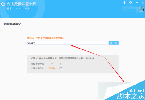 7、选择恢复的数据的保存路径(要选择另外的磁盘分区),并点击下一步;