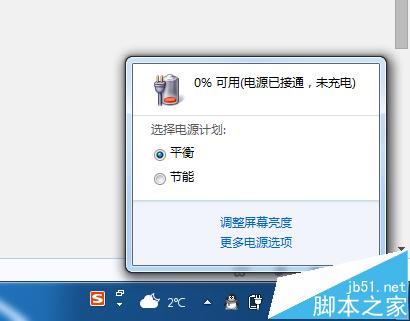 1、打开笔记本电脑之后,在电脑的右下角有电源标注,点开,发现如图情况,则说明电池没有充电