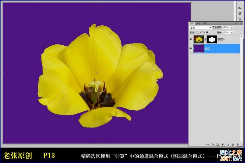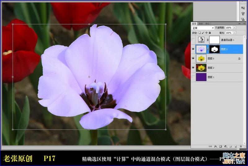 本教程是向大家讲述Photoshop通过计算命令无限改变花的颜色图文方法,教程很实用,而且也很简单,很适合新手来学习,推荐到脚本之家,喜欢的朋友快点来学习吧!