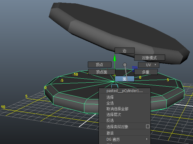 3、在选中物体的情况下,单击右键,移动鼠标到“面”子菜单,将需要连接的两个物体中间的面删除;