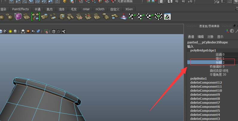 8、在右侧输入卷栏下更改分段数,完成连接;