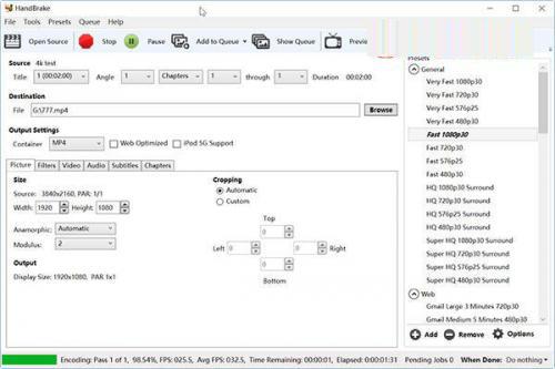 6、 HANDBRAKE 4K-1080p视频转码测试