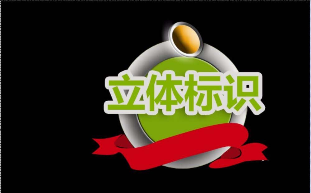 5、在立体标识的中间打上绿色的文字,使用白色为这个文字进行描边。