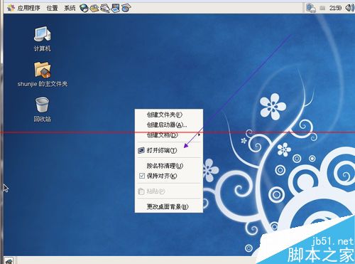 2、在桌面上右击,选择打开终端