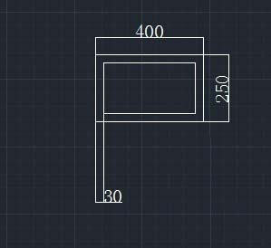 3、执行“矩形”命令(rec),绘制一个400mmX250mm的直角矩形;再执行偏移命令(O),将直角矩形向内偏移30mm.