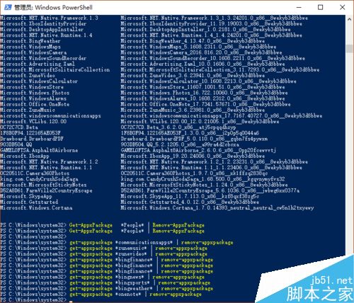 4、卸载win10中的日历和邮件,输入get-appxpackage *communicationsapps* | remove-appxpackage。