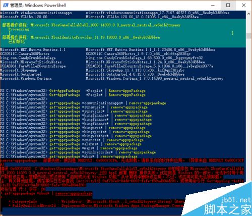 15、卸载xbox,输入命令get-appxpackage *xbox* | remove-appxpackage。