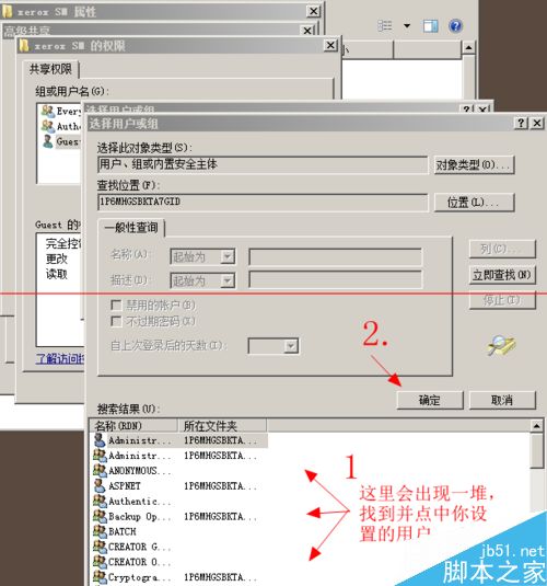 9、找到亲之前设置的用以打印机登录电脑用的用户名,选中然后点击“确定”,打印机上和电脑上设置完成后建议重启一次打印机(通过电脑在打印机管理里重启就可以了)