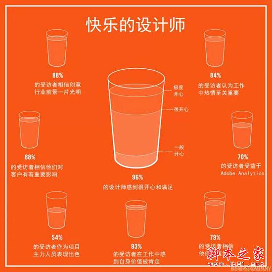 Adobe一份新的研究指出,创意人员在工作中感到很快乐。经过对 1000 名受访者的调查,Adobe 发现在“满意度”这个杯子里,美国的设计师、插画家和摄影师倒的水可是比一半还要多哦。