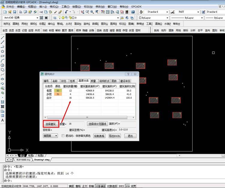 6、接着使用飞时达--总平--建筑分类统计