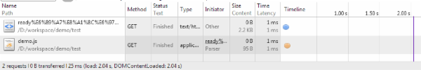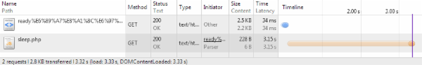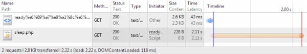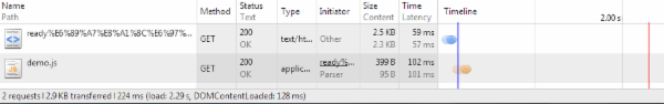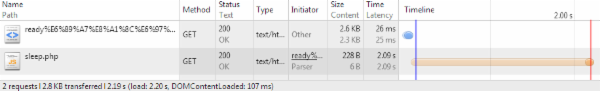在浏览器加载情况: 图1-1. 下载阻塞DomReady 图1-2. 执行阻塞DomReady