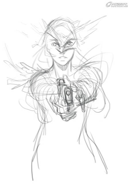 3、开始绘制草图。这次我想画的是一个破茧成蝶的感觉,一个柔弱细腻的躯体和一种冲破束缚的力量。当然,破茧这个主题其实已不是什么新鲜题材,不过我也不希望在画面上画一只蛹变成蝴蝶的过程。