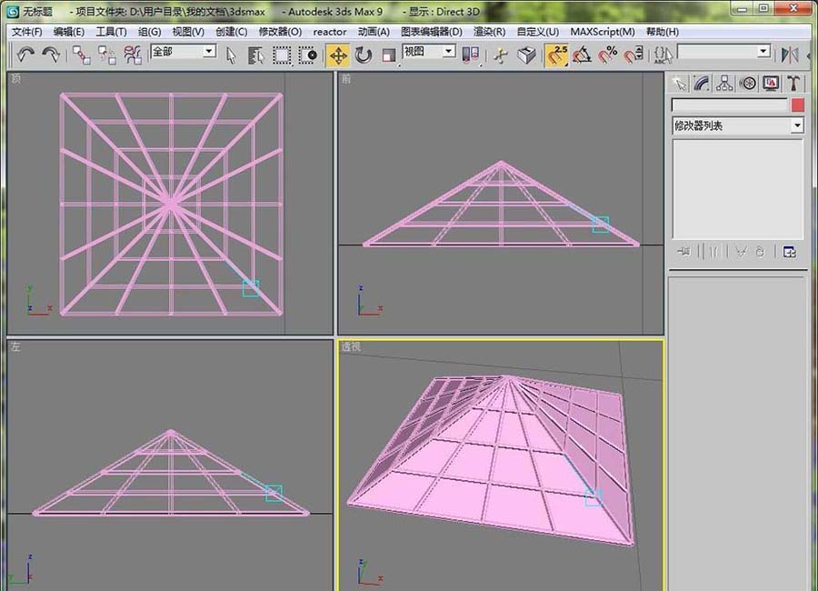 6、复制一个四棱锥,然后删除晶格修改器。放在原位。目的是做顶部