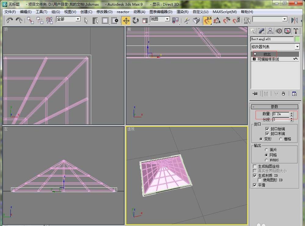 9、然后加载挤出修改器,设置一个挤出数量。这样就做好了顶部