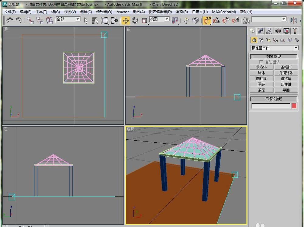 我们可以用最简单的形状来建凉亭的模型,今天就用四棱锥和长方体建一个简单的凉亭模型。