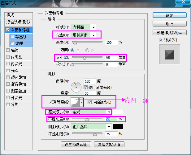 12、双击原始的文字图层并设置如下图层样式。