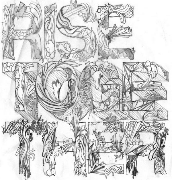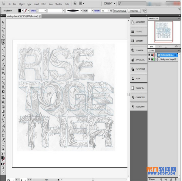 9、对于背景中的其他元素和其组成,我在纸上绘制素描,扫描该草图,然后将其导入到 Illustrator。与其他引用图像一样,将其放在底部图层上,然后将其锁定。