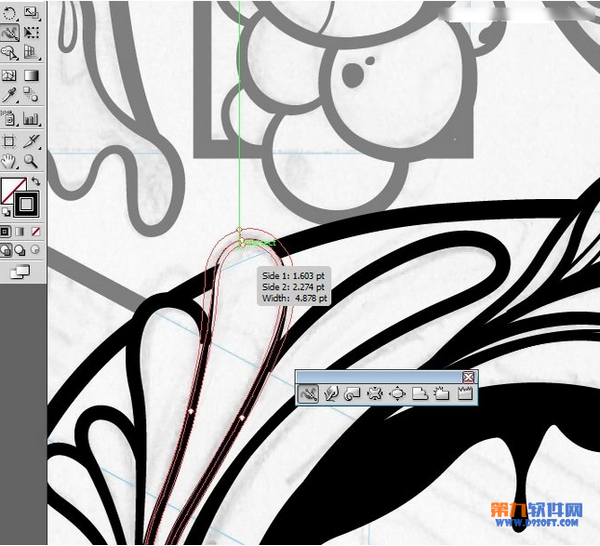 10、我想将有些曲线的末端变为锥形,因此我再次使用“宽度”工具将路径的开放式末端向内拉,从而生成锥形。对变宽描边所进行的另一个处理是创建并保存宽度配置文件,以便可以多次使用。将保存的配置文件应用到背景中的描边路径,以便添加到图稿中的细节级别。