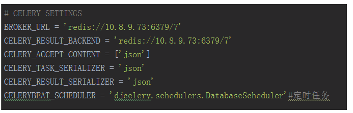 使用数据库存储定时任务需要设置CELERYBEAT_SCHEDULE如下: