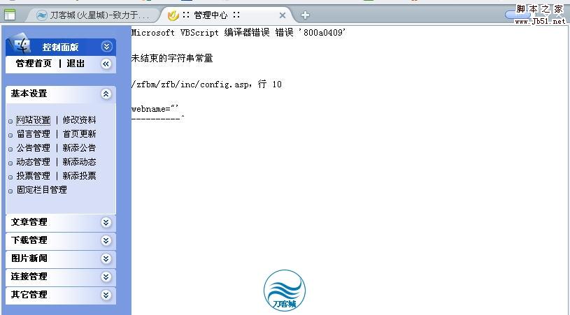 昨天由于很晚了,就没继续看,今天出差,晚上回来刚刚上Q,小刀刀就q我,说拿下了,并说这个后台过滤了双引号",结合昨天的错误一看果然是,由于我们闭合前面双引号起"的那个双引号收"被过滤成单引号',所以就成了webname=" ',这样的话那么这个双引号没有闭合,由于双引号是vbscript的控制符,没有闭合config.asp运行必然出错。那么我们遇到这种双引号被过滤了的情况改怎么办呢。