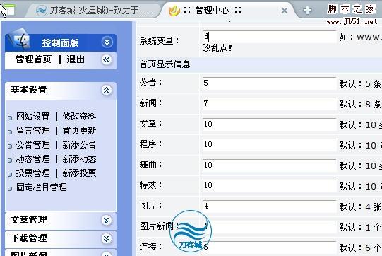 就是配置网站的公告数 ,文章数等。可以假设一下,他必然是整数赋值,没有双引号包括
