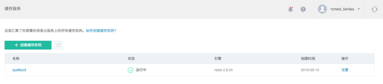 缓存服务管理入口位于网易蜂巢首页的缓存服务选项,点击「缓存服务」,显示当前用户的所有缓存实例列表。