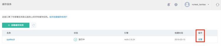 在「缓存服务」主界面,点击该实例「操作栏」的「设置」按钮;