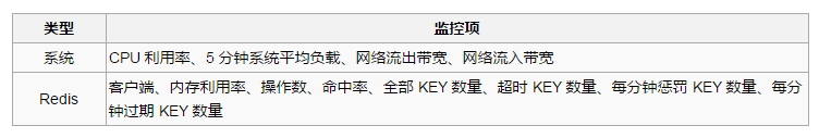 缓存服务性能监控统计指标均以平均值作为统计指标。