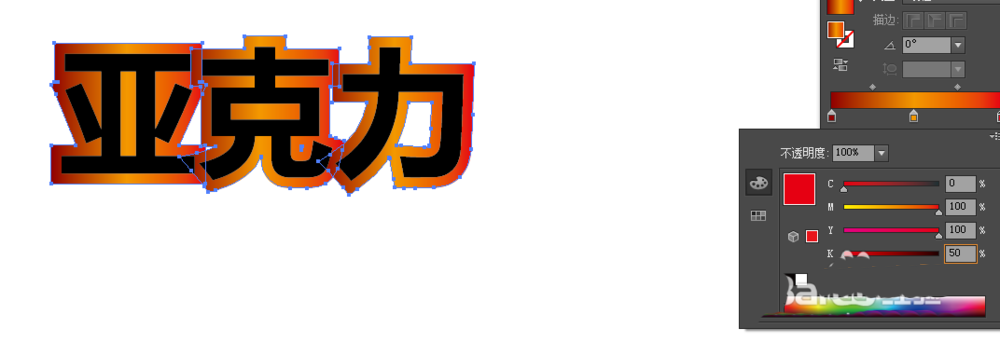 5、对上面一层文字进行激变填充,从左到右分别填充(C:0M:50Y:100K:0,C:0M:0Y:100K:0,C:0M:50Y:100K:0)