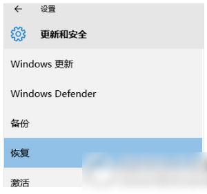 首先从开始菜单中打开设置,选择“更新和安全”,点击窗口左侧的“恢复”。