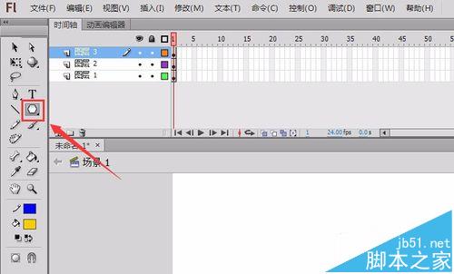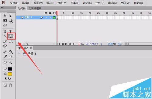 3、点击椭圆工具,在舞台上绘制一个椭圆作为花瓶的瓶体,如图所示: