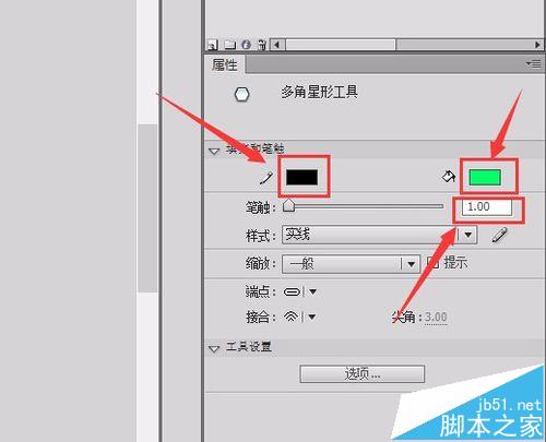 13、设置边数后,调节笔触颜色为黑色,填充色为淡绿色,笔触大小为1,如图所示: